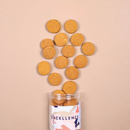 This fragrant cookie is infused with robust coffee flavor, perfectly complemented by the nutty richness of toasted hazelnuts. Baked to a satisfying crispness, this cookie offers a delightful crunch in every bite, making it the perfect accompaniment to your favorite cup of coffee or tea.